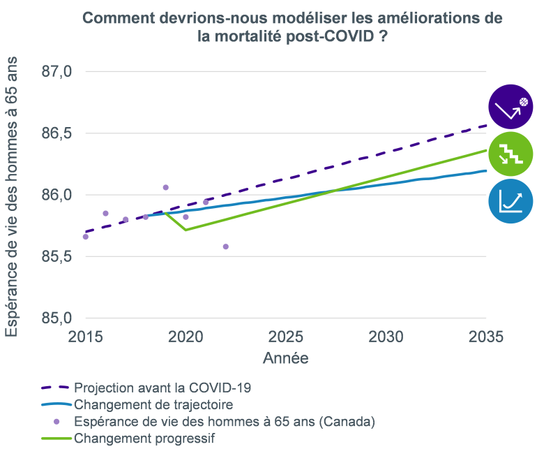 Vu que de nombreuses parties prenantes cherchent à intégrer les incidences de la COVID sur la mortalité future, le choix de l’approche de modélisation dépendra de l’évaluation des perspectives postérieures à la pandémie, ce qui pourrait aboutir à une combinaison de différentes approches.