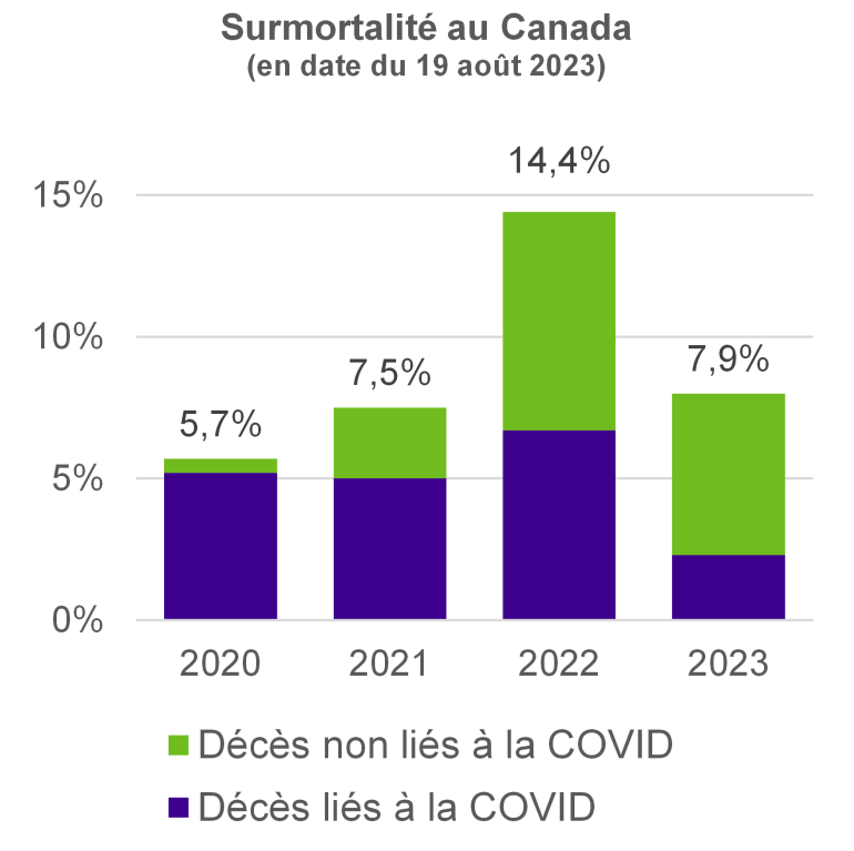 Selon le Rapport de l’ICA, la surmortalité directement et indirectement liée à la pandémie est une tendance pluriannuelle. De plus, il est impossible d’affirmer avec certitude que la mortalité reviendra à son niveau antérieur à la pandémie.