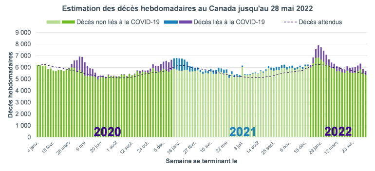 Sources: Statistique Canada (Tableau 13-10-0792-01) et Gouvernement du Canada (Mise à jour sur l’épidémiologie de la COVID-19).