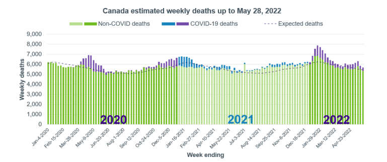 It certainly doesn’t seem so from the data. In 2020, 92% of deaths in excess of the 2015-2019 average were recorded as COVID related, however this drops to 76% in 2021. National data is incomplete through the summer of 2022, but data from some of the provinces suggest this situation could have continued through 2022.