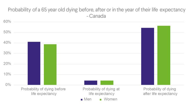 - There is only a 4% chance that a 65 year old will die at the age of their life expectancy.