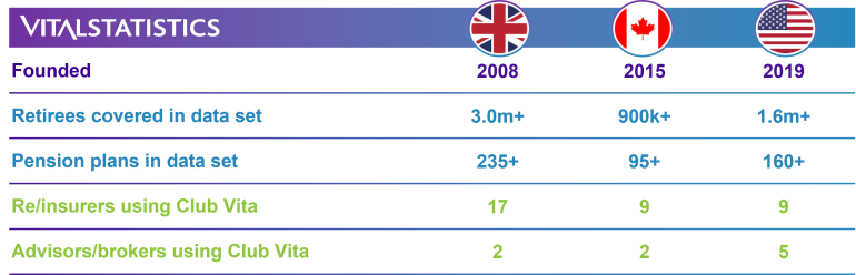 Over 400 leading DB pension funds pool their data through Club Vita in either the UK, US or Canada.
