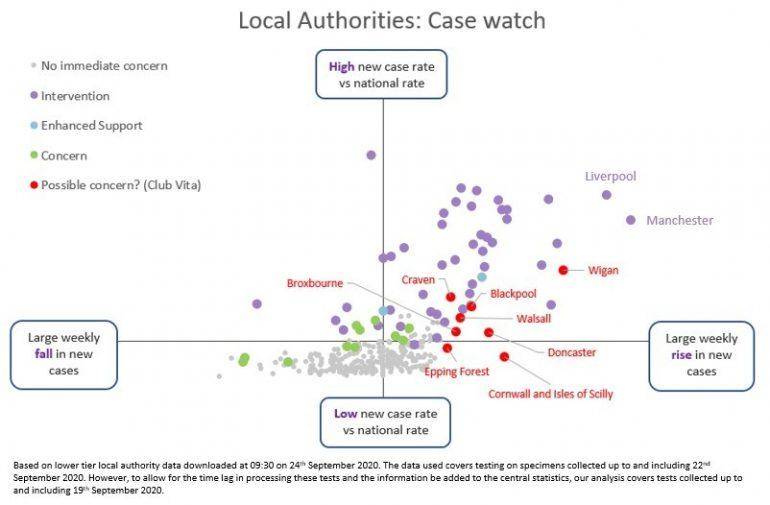 We enlarge this week’s case watch below, and highlight the eight local authorities of possible concern.