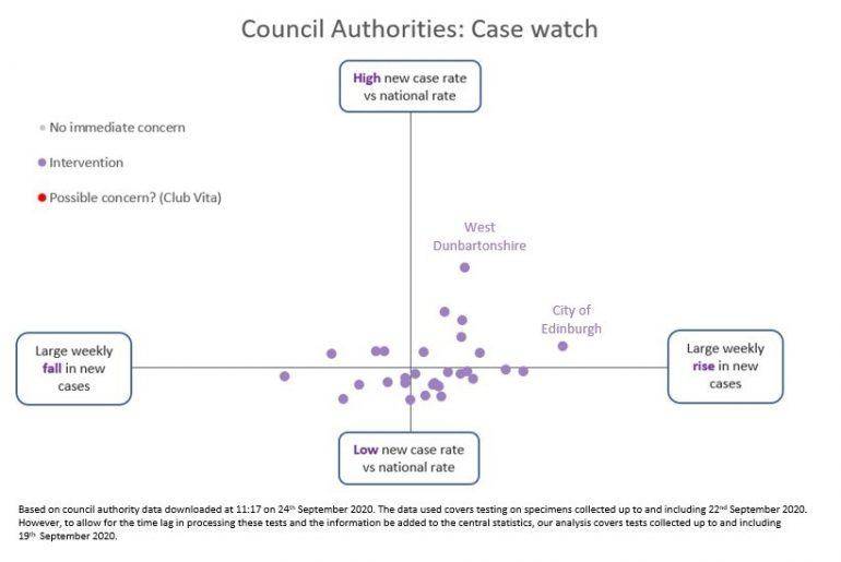 - The growth in new cases in City of Edinburgh may be of concern