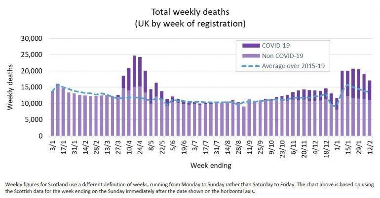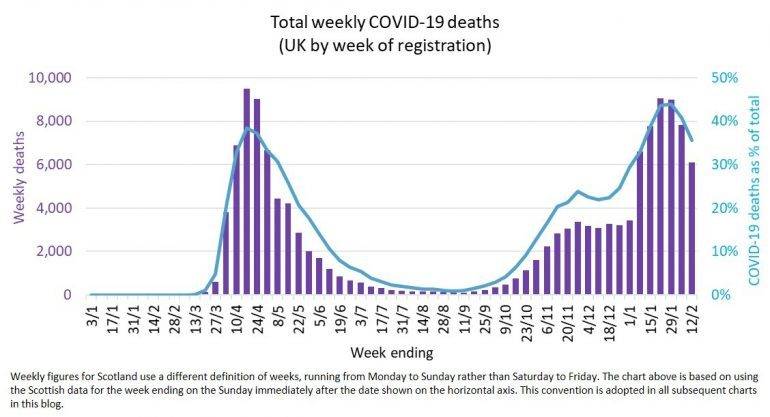 The latest statistics from the ONS include detailed breakdowns of deaths registered in England & Wales up to 12th February 2021. Combining this information with similar data from the corresponding statistical bodies in Scotland and Northern Ireland, we can examine emerging patterns in the data.