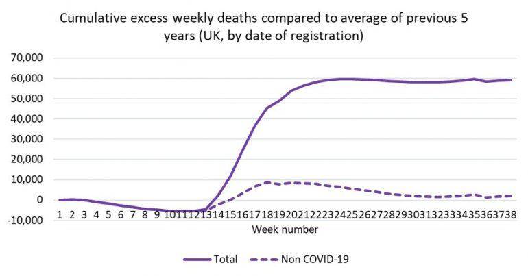 The upwards trend in non COVID-19 death figures relative to average levels over July and August (out-with the bank holiday impact) also highlights the risk of broader health impacts arising from the pandemic.