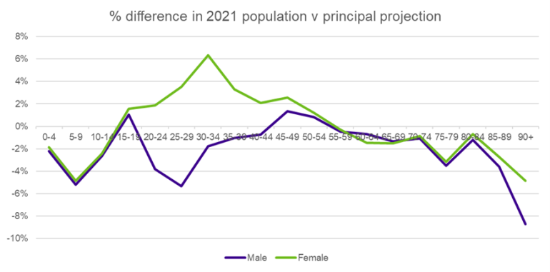 [1] The census data is as at 21 March 2021, whereas the population estimates are as at 30 June 2021. Therefore, we might expect some variation due to these timing differences – for example some people will die in the intervening period, and some will have a birthday so potentially move age band. We have not made any adjustment in our analysis to reflect this variation and would not expect it to materially change the conclusions.