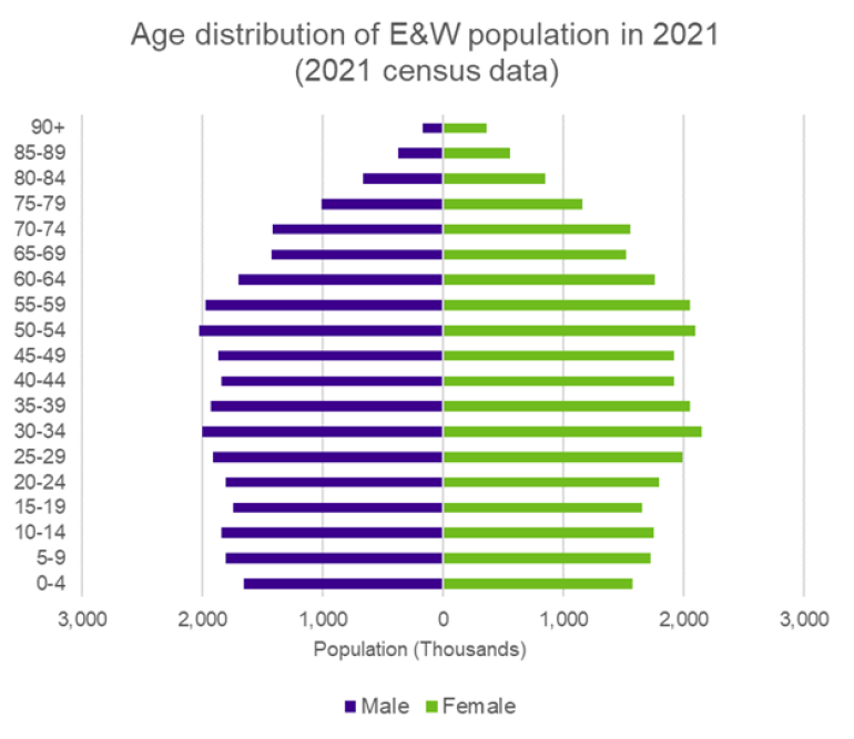 The ONS has today (28th June 2022) published the initial results from the 2021 Census, setting out population and household estimates for England & Wales (the Census was delayed until 2022 in Scotland). These initial figures are provided at a local authority level, split by gender and 5-year age bands (based on age last birthday on Census Day – 21 March 2021).