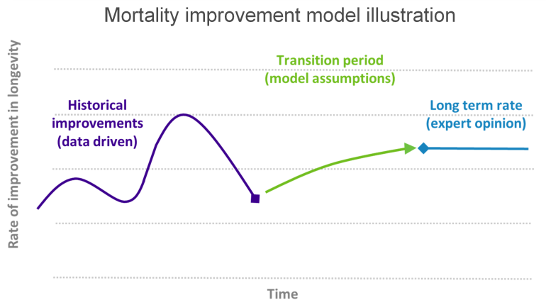 The impact on liabilities can be material – a 1% increase in historical improvements could increase pension scheme liabilities by around 2-4%.